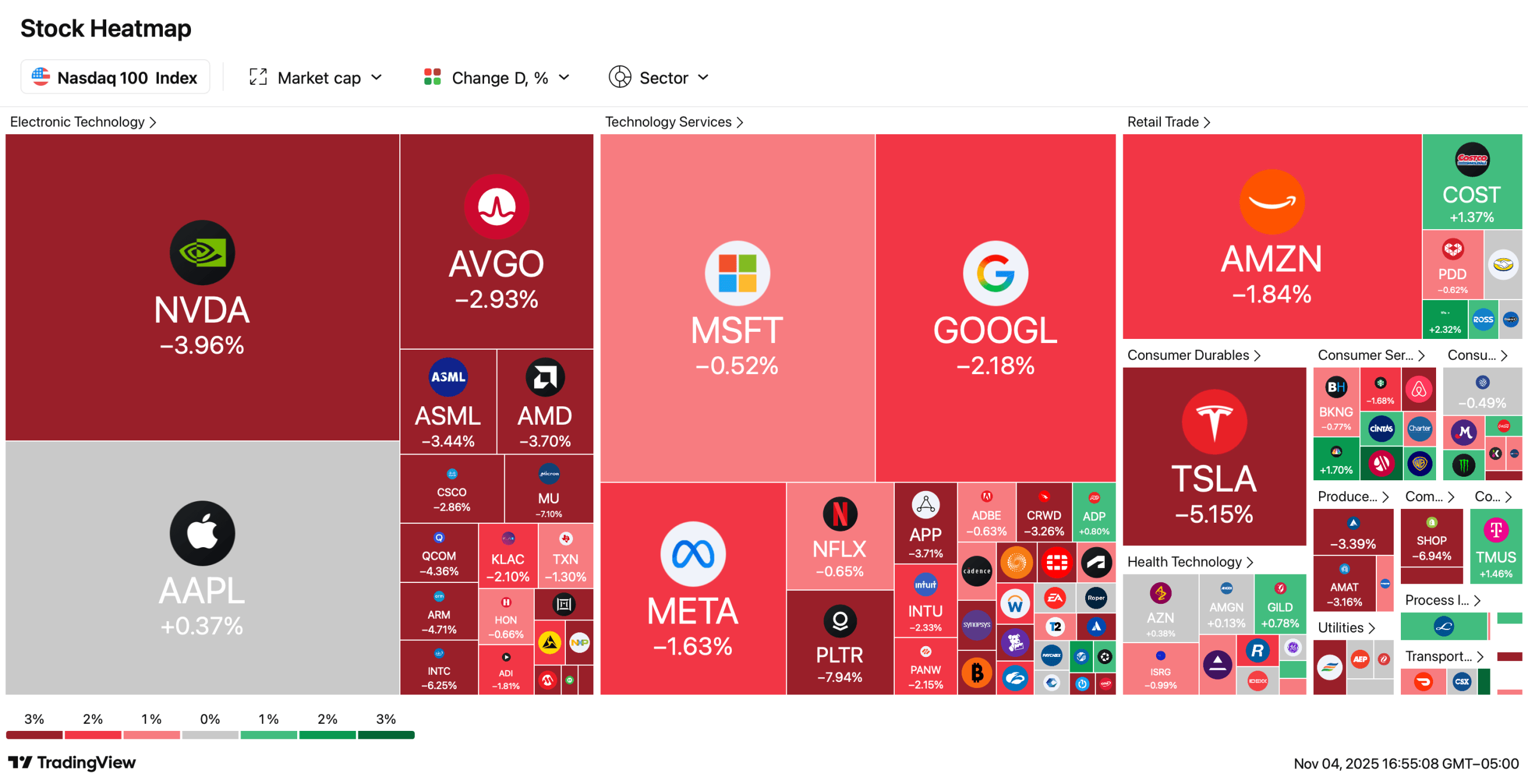 Биткоин опустился ниже $100,000, достигнув $99,553 на Bitstamp, и потерял более 6% всего за один день. Впечатляет, правда? - Какие секторы пострадали больше всего?